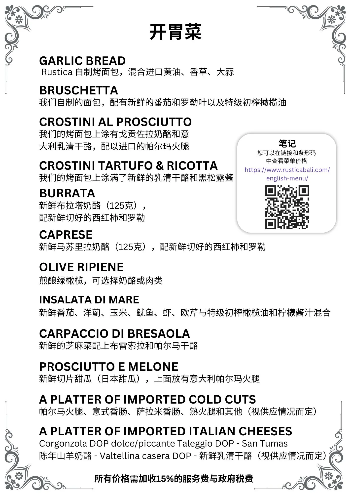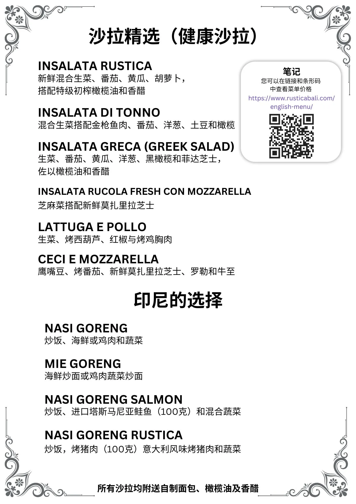 English Menu